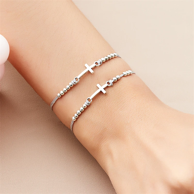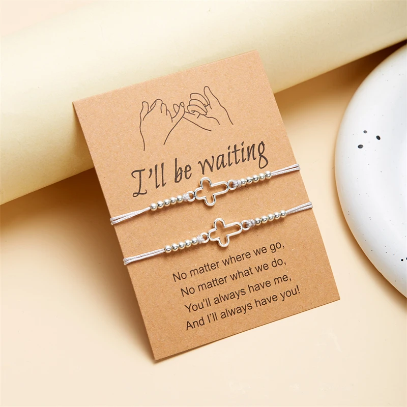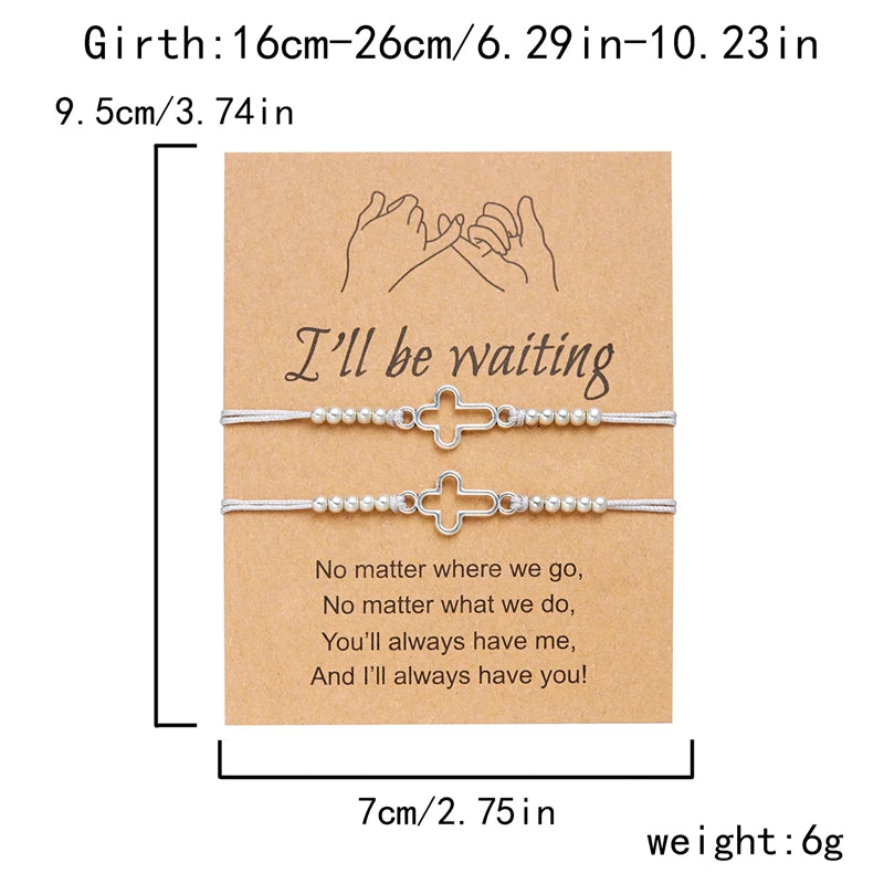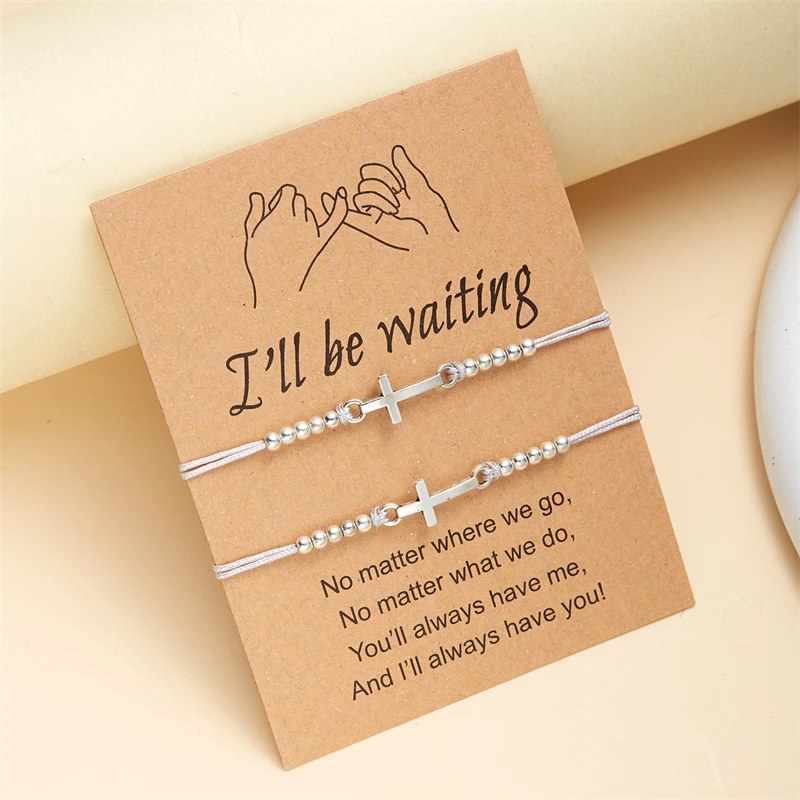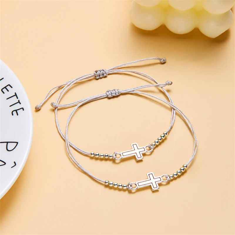 2Pcs/Set New Simple Cross Braided Bracelet for Women Men Handmade Adjustable Friendship Couple Bracelet Christian Prayer Jewelry