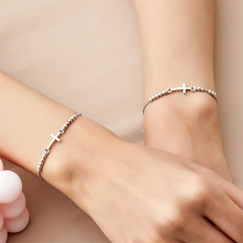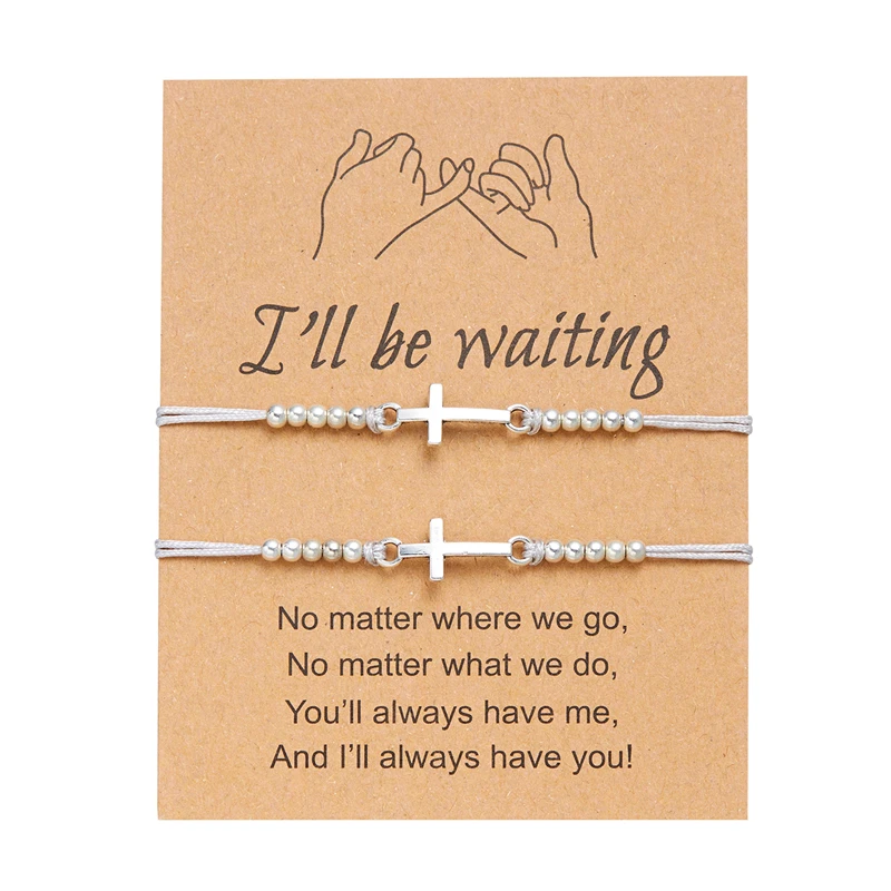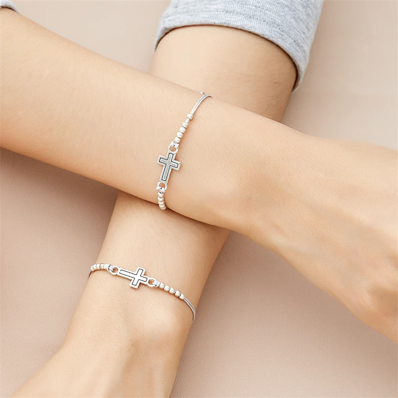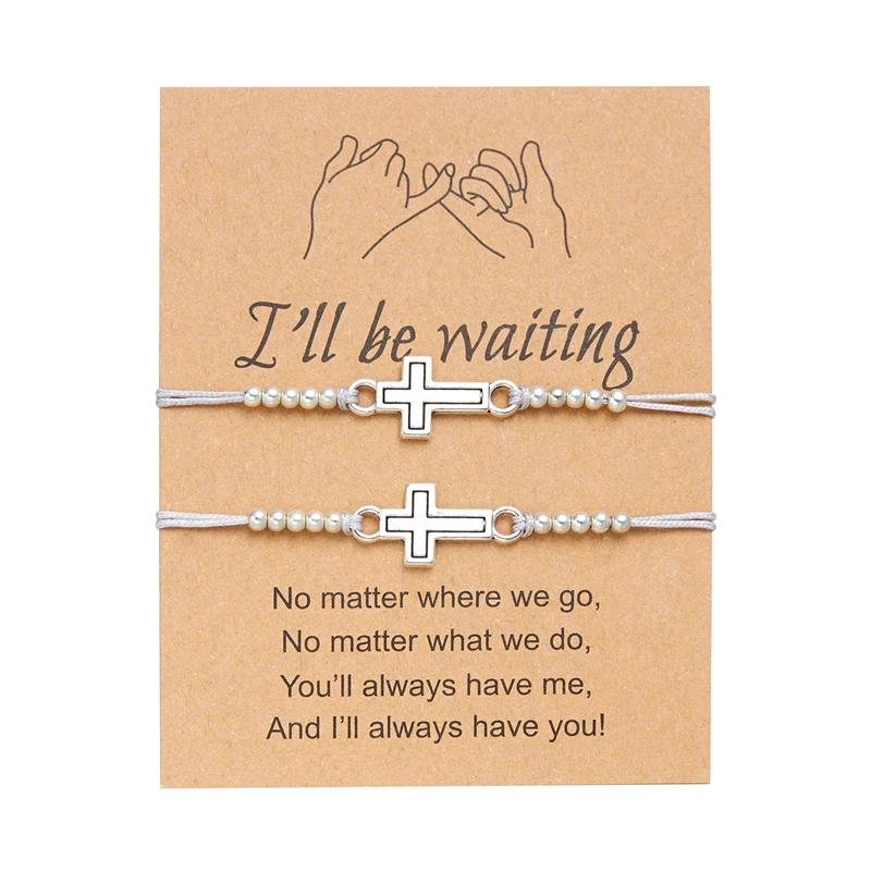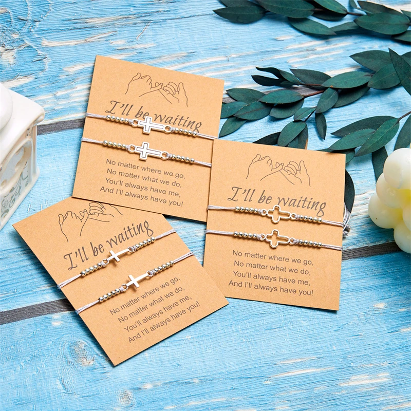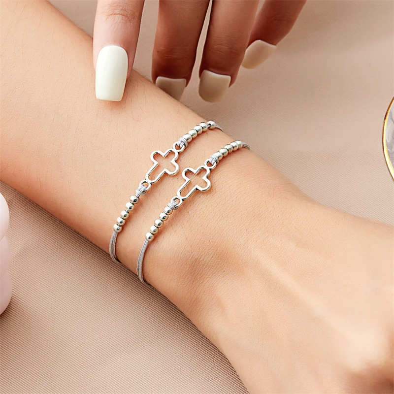 2Pcs/Set New Simple Cross Braided Bracelet for Women Men Handmade Adjustable Friendship Couple Bracelet Christian Prayer Jewelry